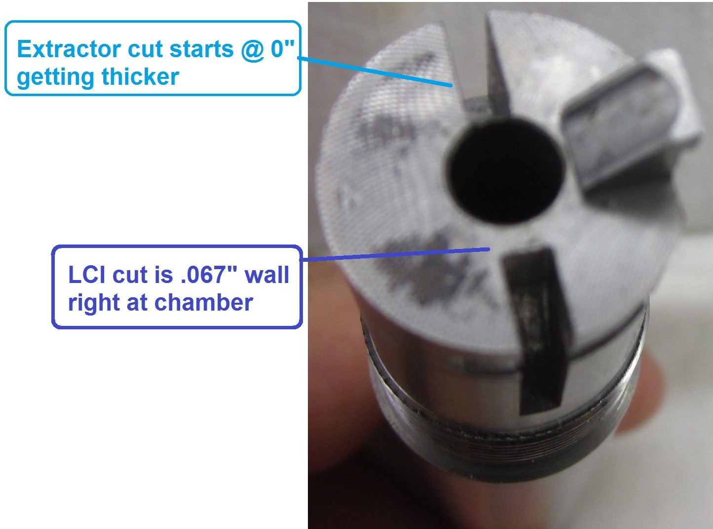 The Ruger LITE pistol barrels are a full 1" diameter and use a SHORTER front sight than the steel Bull barrels do.