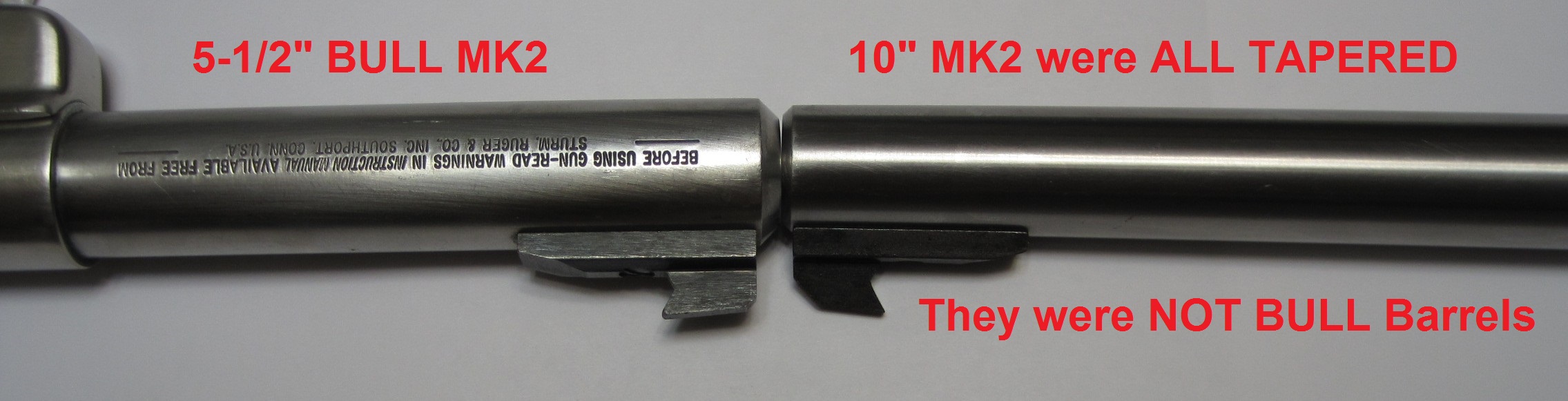 The 10" Ruger Mark II pistols used a front sight unique to them and the front sights are no longer made. It used a taller sight than the bull barrels since the 10" barrel is slightly tapered.